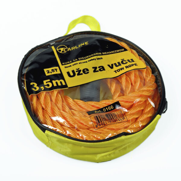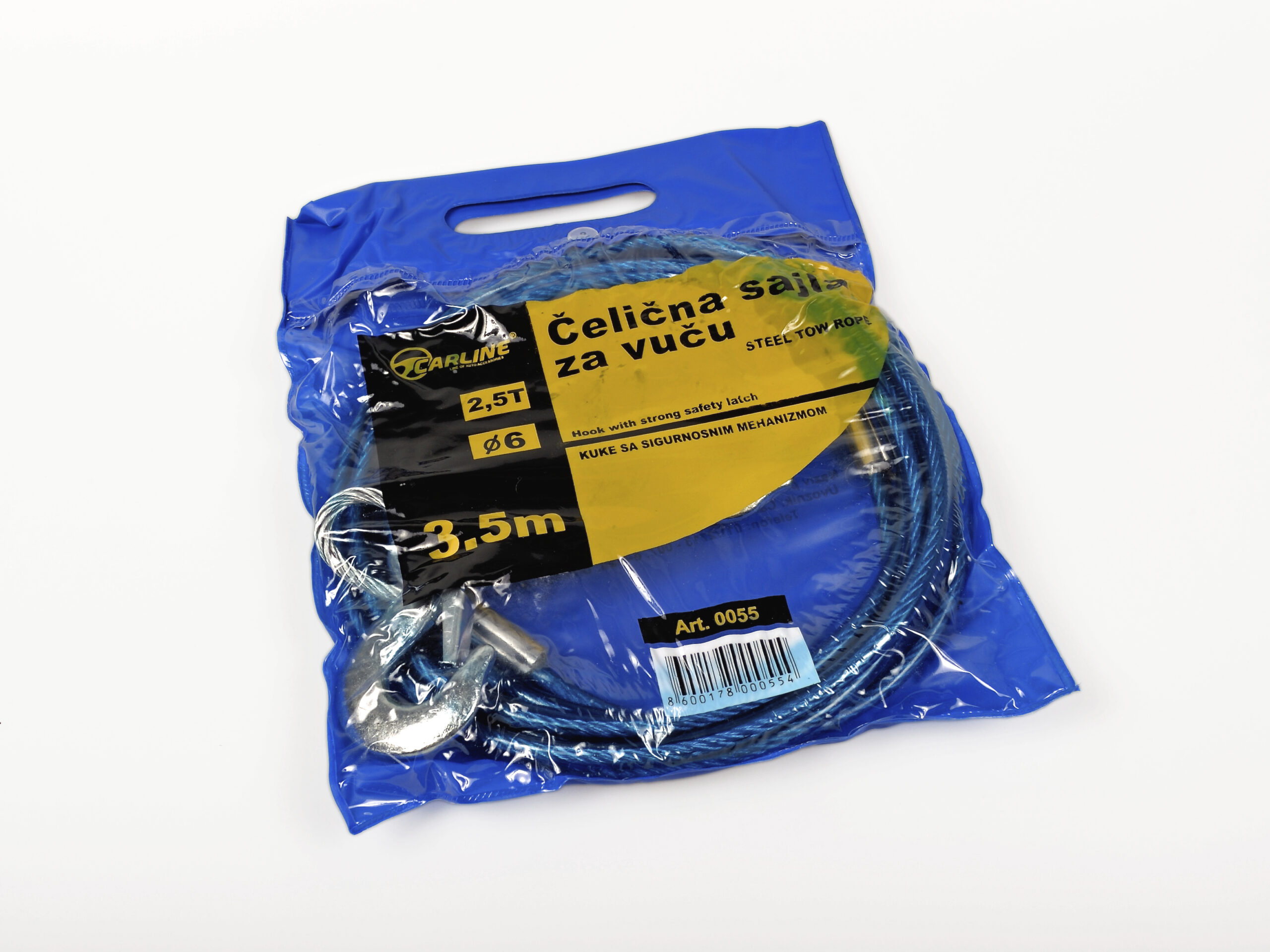 Čelična sajla za vuču sa čeličnim sigurnosnim kukama. Presek sajle Ø6, vučne snage do 2500 kg, dužine 3 m